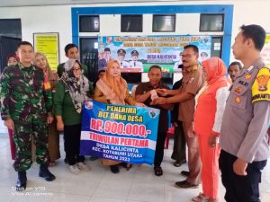 Realisasi kegiatan diantaranya, empat puluh persen pertama pembagian Bantuan Langsung Tunai BLT dibagikan kepada 72 Kpm di kali tiga bulan,