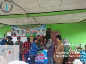 Kotabumi-Pewartainvestigasi.com-Sebanyak 49 KPM desa Banjar Wangi Kecamatan Kotabumi utara, Kabupaten Lampung Utara menerima Bantuan langsung tunai (BLT DD) berlangsung di dibagikan kantor desa gedung desa Kecamatan Kotabumi utara, selasa 2 Mei 2023