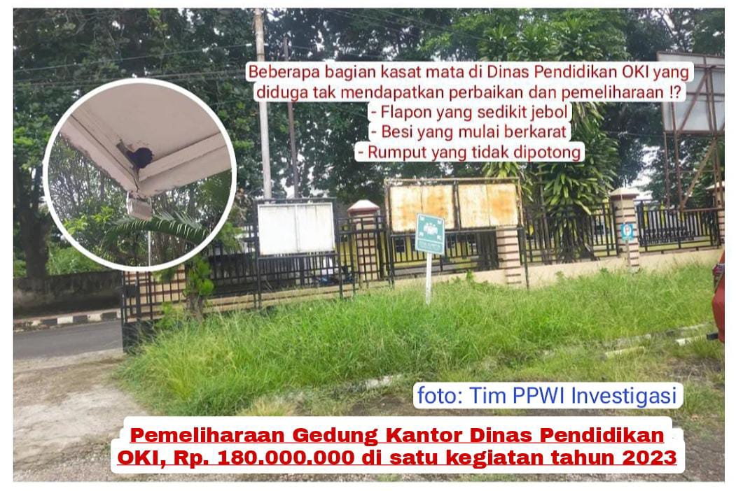 Pasalnya dari kegiatan di tahun 2023 Gedung Kantor Dinas Pendidikan OKI diduga tak banyak terlihat tanda-tanda pemeliharaan kantor.