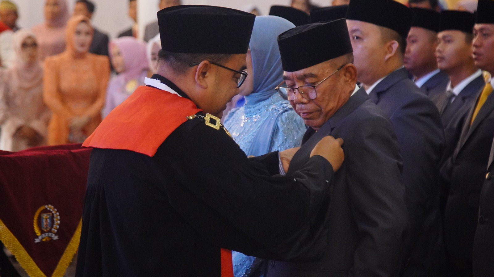 Hal ini sesuai dengan Undang – Undang Tentang Susunan Kedudukan MPR, DPR, DPD dan DPRD, bahwa Anggota DPRD Sebelum Memangku Jabatannya Mengucapkan Sumpah/Janji secara bersama – sama yang dipandu oleh Ketua Pengadilan Negeri Dalam Sidang Paripurna DPRD.