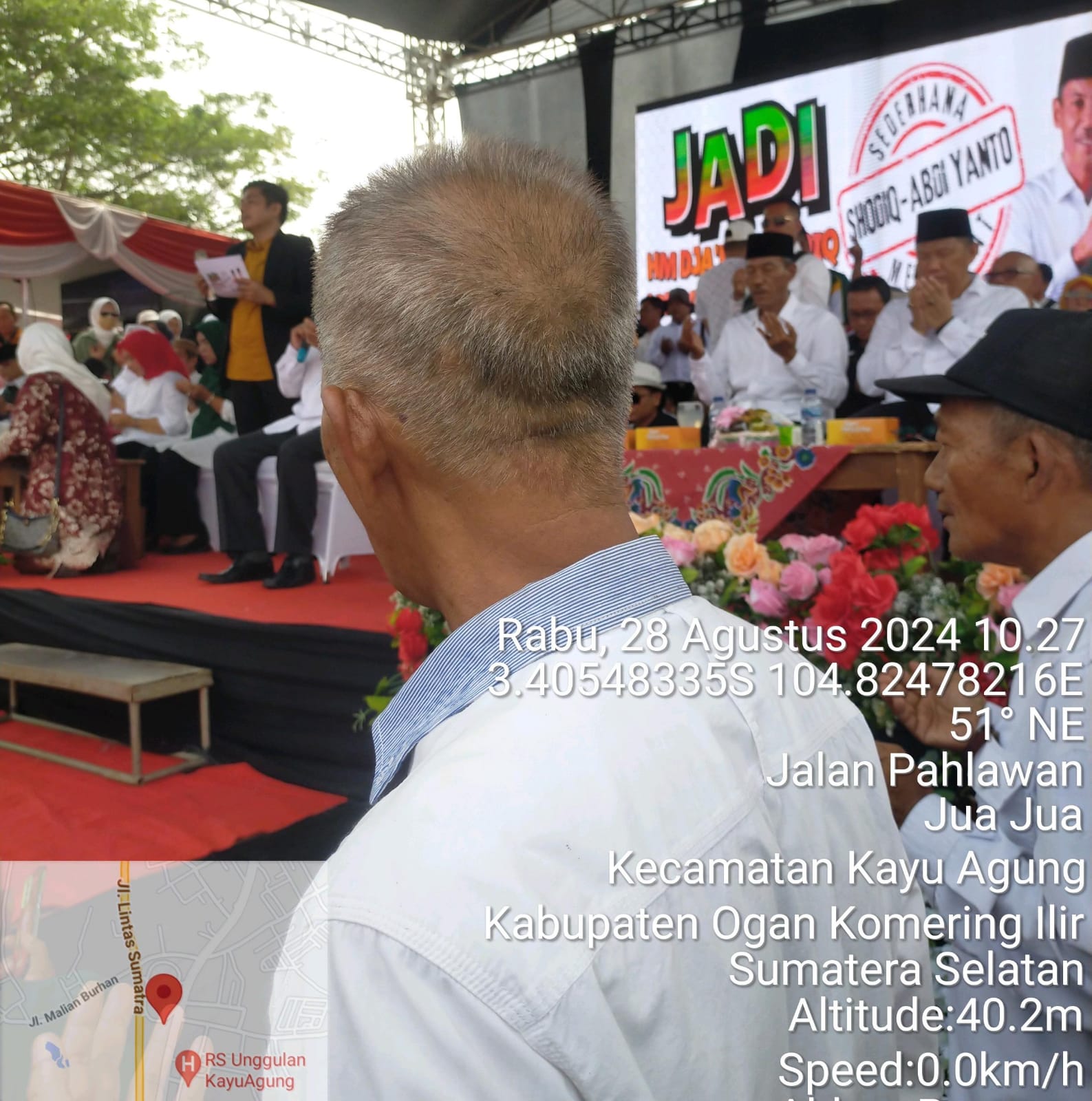 Adapun ribuan masa yang memadati deklarasi pasangan JADI ini dipusatkan di lapangan Segitiga Emas Kecamatan Kayuagung OKI.