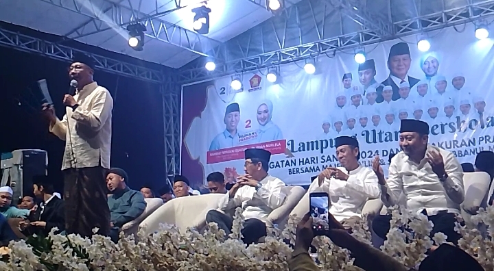 Di acara yang sama KH.Son Haji Aziz,S.Pdi menyampaikan kata sambutannya selaku ketua penyelengara yaitu,” Malam ini adalah kegiatan yang sangat meriah sekali dan bernuansa islam,walaupun kita memiliki pondok pesantren kita sama sama santri,Kebetulan tanggal 22 oktober ini kita memperingati hari santri,insya allah bapak Mirzani dan ibu Jihan dapat terpilih menjadi Gubernur dan Wakil Gubernur Lampung yang akan datang,begitu juga bapak Hamartoni dan Romli juga Insya allah menjadi bupati dan wakil bupati lampung utara kedepan,ucapan terima kasih juga tak lupa kami sampaikan atas kerjasamanya atas terselengaranya kegiatan ini dapat menjadi lancar dan aman,tuturnya KH.Son Haji Aziz.