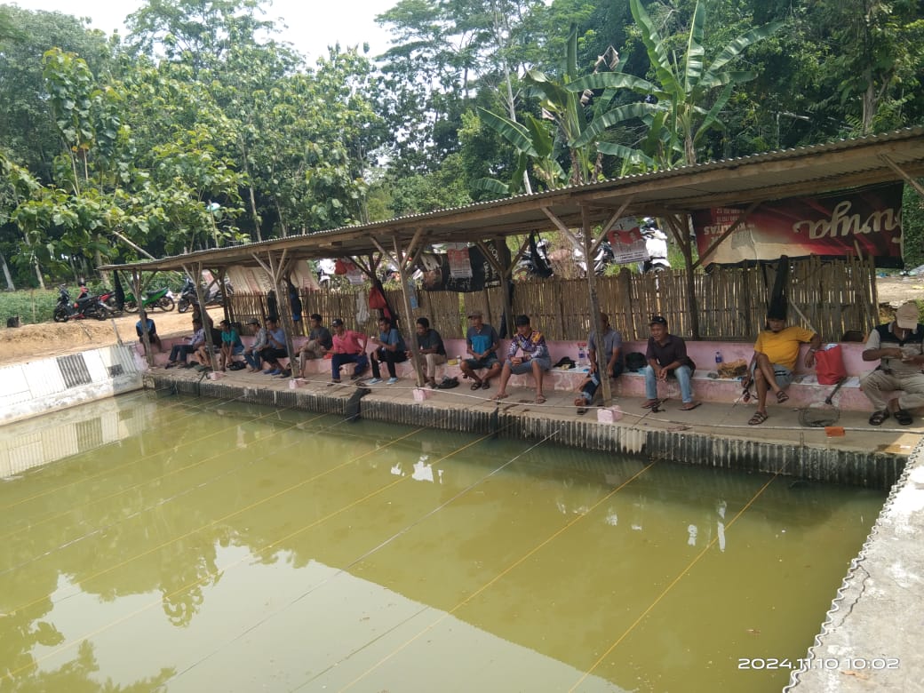 Antusias warga dusun tulung mili Kecamatan Kotabumi, hadiri dalam acara lomba mancing tersebut sambil canda gurau.