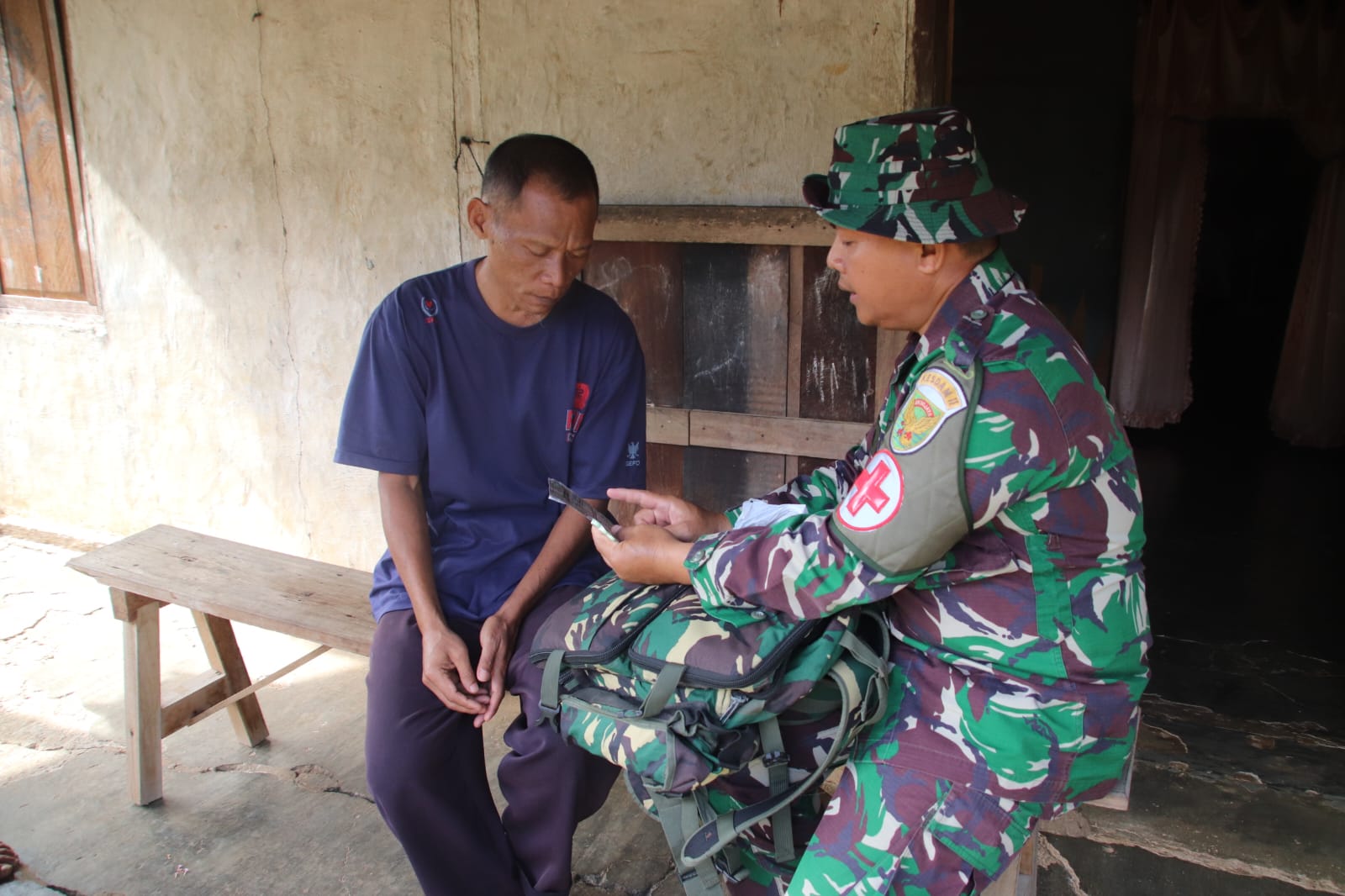 Tidak hanya Anggota Satgas TMMD, Pelayanan kesehatan juga menyasar ke rumah warga sekitar. memberikan dorongan semangat motivasi kesehatan terhadap warga, pemeriksaan tensi, mengetahui riwayat kesehatan, pemberian obat vitamin dan memberikan arahan positif bagi warga yang mengalami penurunan kesehatan.