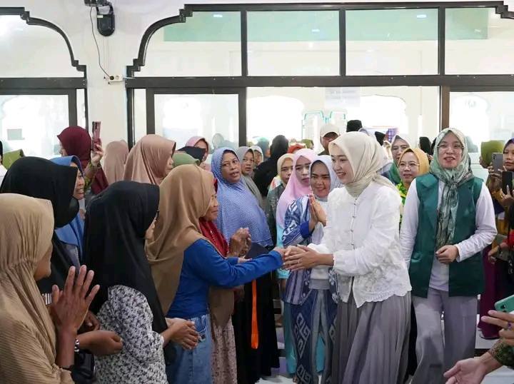 Lampung Selatan (PI) – Wakil Gubernur Lampung, Jihan Nurlela, meninjau langsung pelaksanaan Pasar Murah yang diselenggarakan oleh Pengurus Wilayah Muslimat Nahdlatul Ulama (PW Muslimat NU) di Halaman Masjid Jami Nurul Iman, Desa Tanjung Sari, Kecamatan Natar, Lampung Selatan, Kamis (23/03/2025).