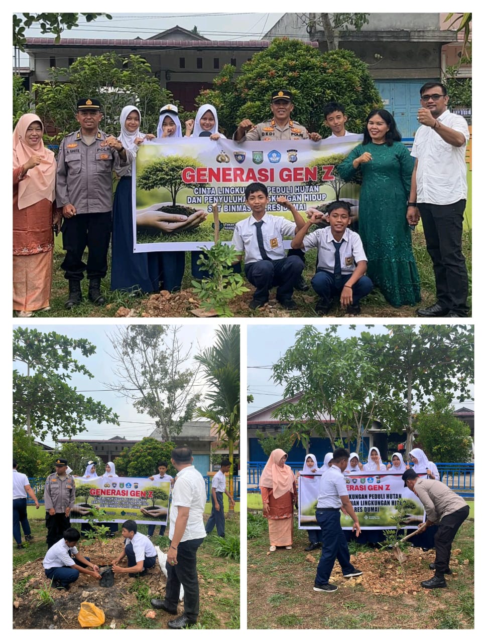 Usai penyuluhan, kegiatan dilanjutkan dengan penanaman bibit pohon di lingkungan sekolah. Aksi ini dilakukan bersama Kepala Sekolah SMPN 7 Dumai, Fitri Hayati, S.Pd., para guru, serta siswa-siswi yang tampak antusias mengikuti kegiatan hingga selesai.