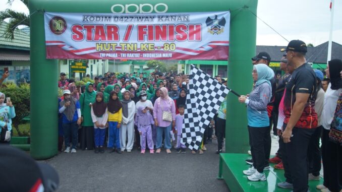 “Terima kasih kepada seluruh prajurit TNI atas pengabdian tanpa batas untuk Way Kanan. Mari kita nikmati setiap langkah pagi ini dengan penuh kebersamaan dan kegembiraan. Semoga semangat HUT ke-80 TNI menjadi momentum untuk terus memperkokoh kolaborasi dalam mewujudkan Way Kanan yang aman, damai, maju, dan sejahtera,” tutur Bupati Ayu.