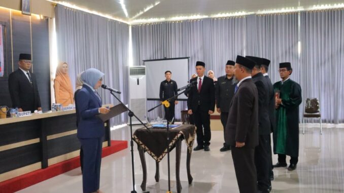 Way Kanan (Pl) – Pelantikan dan Pengambilan Sumpah/Janji Jabatan Pimpinan Tinggi Pratama di Lingkungan Pemerintah Kabupaten Way Kanan serta Penandatanganan Pakta Integritas Pejabat Pimpinan Tinggi Pratama di Lingkungan Pemerintah Kabupaten Way Kanan, di Ruang Buway Pemuka Pengiran Udik, Senin (24/11/2025).