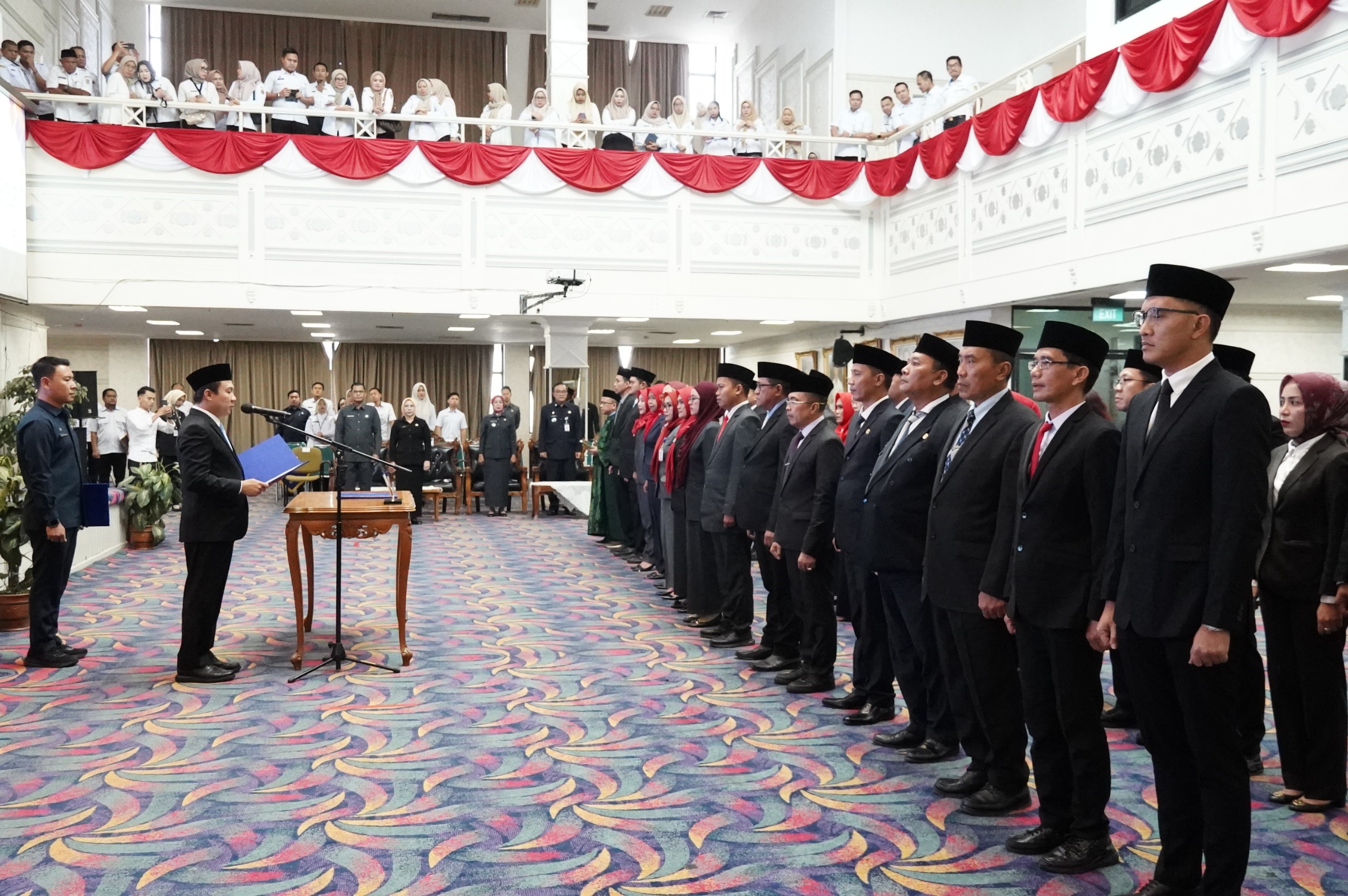 Bandar Lampung (PI) — Gubernur Lampung diwakili oleh Sekretaris Daerah Provinsi Lampung, Marindo Kurniawan melantik sekaligus mengambil sumpah jabatan Pejabat Administrator dan Pejabat Pengawas di Lingkungan Pemerintah Provinsi Lampung yang digelar di Balai Keratun Lantai III, Kompleks Kantor Gubernur Lampung, Rabu (21/01/2026).