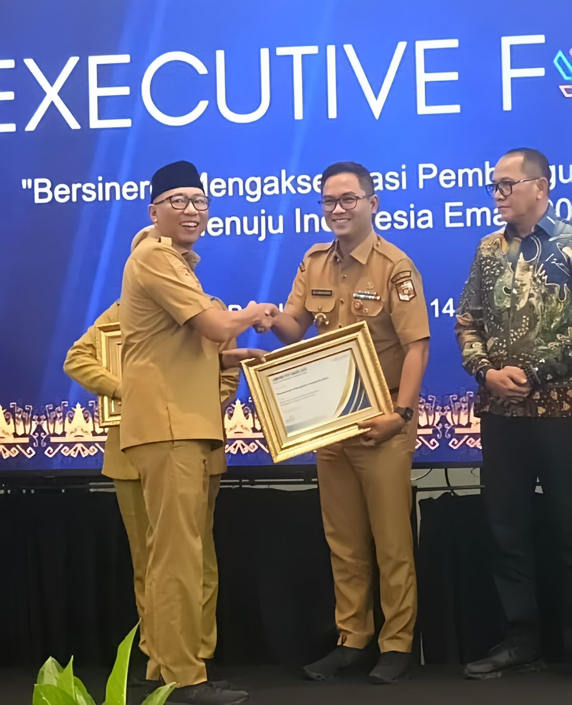 Penghargaan diserahkan oleh Gubernur Lampung Rahmat Mirzani Djausal dan diterima oleh Bupati Lampung Utara yang diwakili Kepala Dinas Komunikasi dan Informatika Gunaido Uthama, S.IP., M.M., saat acara Pembukaan Lampung Post Ekonomi Eksekutif Forum 2026 di Emersia Hotel Bandarlampung, Selasa 14 April 2026.