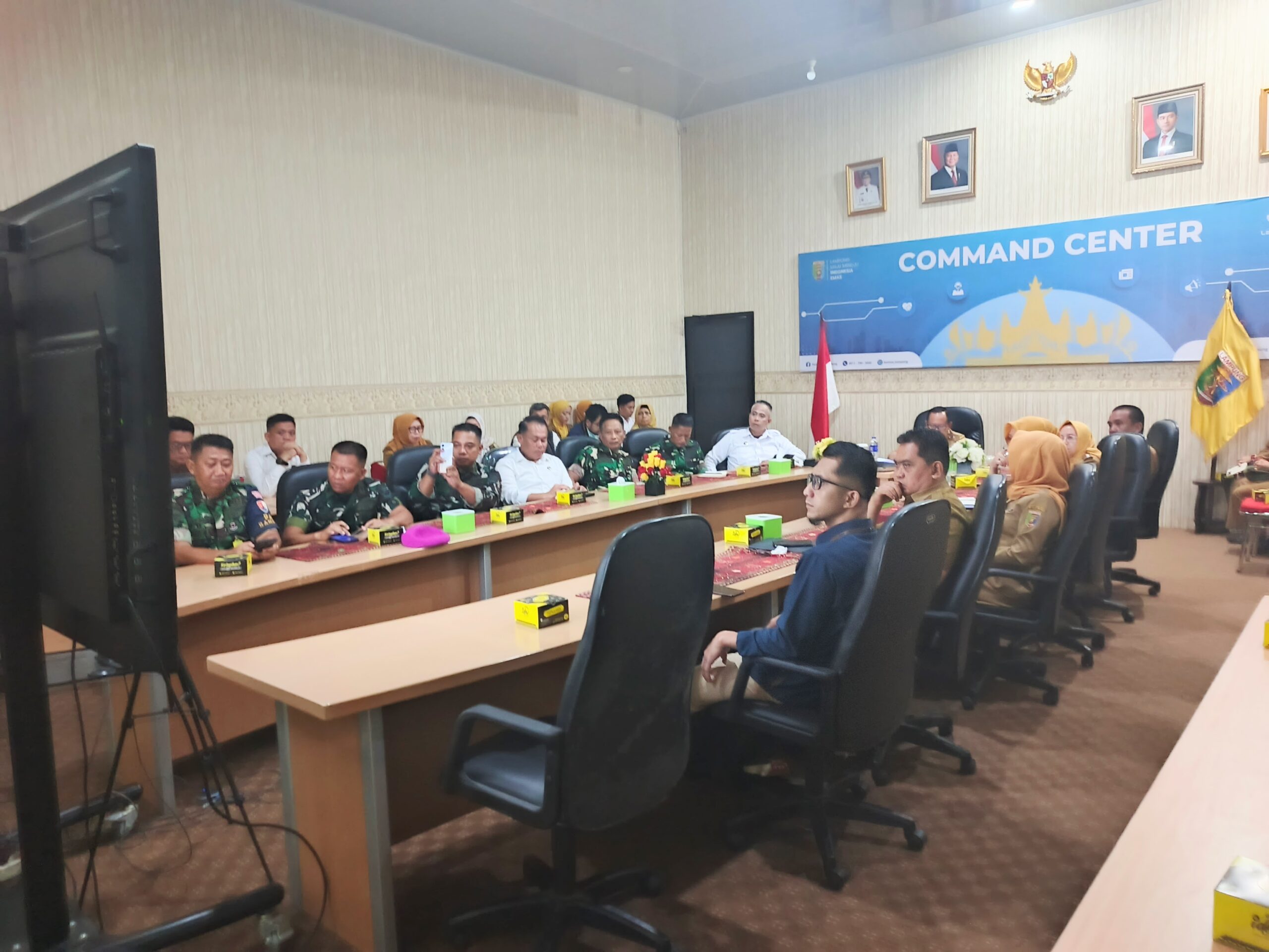 Bandar Lampung (PI) —- Asisten Administrasi Umum, Sulpakar, mengikuti Rakor Pengendalian Inflasi Daerah secara daring, di Ruang Command Center Dinas Kominfotik Provinsi Lampung, Senin (27/4/2026).