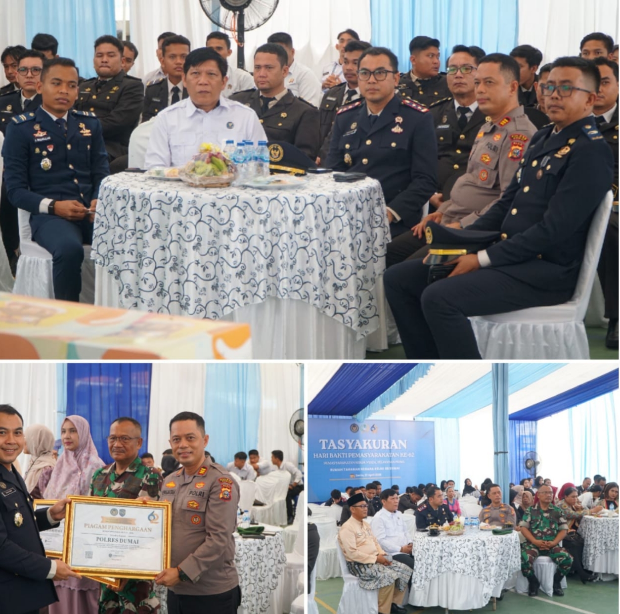 Dumai – (PI) Rumah Tahanan Negara (Rutan) Kelas IIB Dumai menggelar kegiatan tasyakuran dalam rangka memperingati Hari Bakti Pemasyarakatan (HBP) ke-62, Senin (27/4). Kegiatan berlangsung secara hybrid melalui Zoom Meeting dan diikuti oleh seluruh Unit Pelaksana Teknis (UPT) Pemasyarakatan di Indonesia.